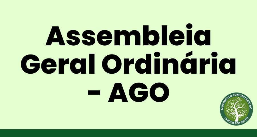 O Movimento Comunitário do Jardim Botânico (Movimento), com CNPJ nº 23.583.083/0001-94, em conformidade com os Capítulos VI do Estatuto Social do Movimento, através de sua Diretoria Administrativa, devidamente representada por sua Presidente, Sra. Rosilene Maria Marques Martins, CONVOCA para Assembleia Geral Ordinária, através do presente edital, todos os associados, a comparecerem no dia 21 de Março de 2026, às 09h00 a primeira chamada, e às 09h30, a segunda chamada com qualquer número de pessoas presentes, para deliberar sobre as seguintes pautas: