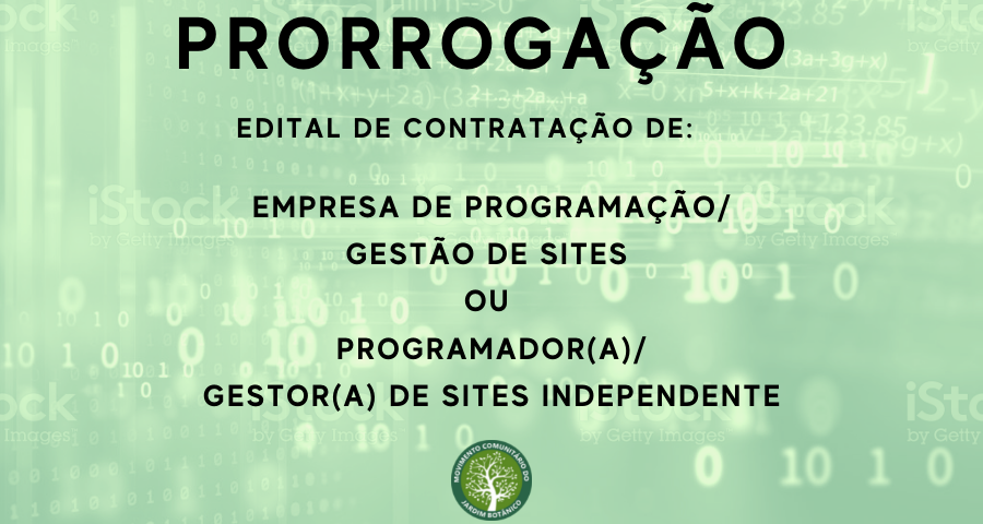 O Movimento Comunitário do Jardim Botânico – MCJB, com sede na SHM – Centro de Práticas Sustentáveis, Av. do Cerrado s/n, Jardins Mangueiral – CEP: 71687-130 – Jardim Botânico-DF, declara aberto o presente Chamamento Público para contratação de Empresa de Programação/Gestão de Sites ou Programador(a)/Gestor(a) de Sites Independente.