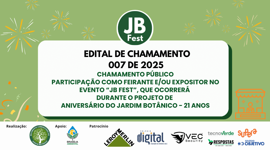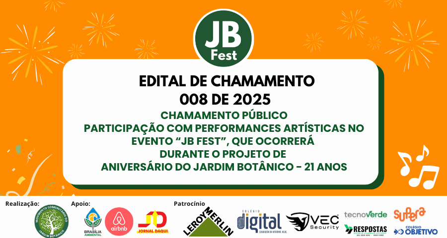 CHAMAMENTO PÚBLICO PARA PERFORMANCES ARTÍSTICAS NO EVENTO “JB FEST”, QUE OCORRERÁ DURANTE O PROJETO DE ANIVERSÁRIO DO JARDIM BOTÂNICO – 21 ANOS