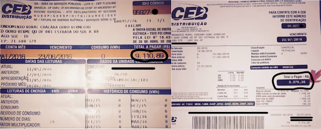 Diferença nas contas da CEB de Maio e Junho de 2016, economia de R$5.735,53.