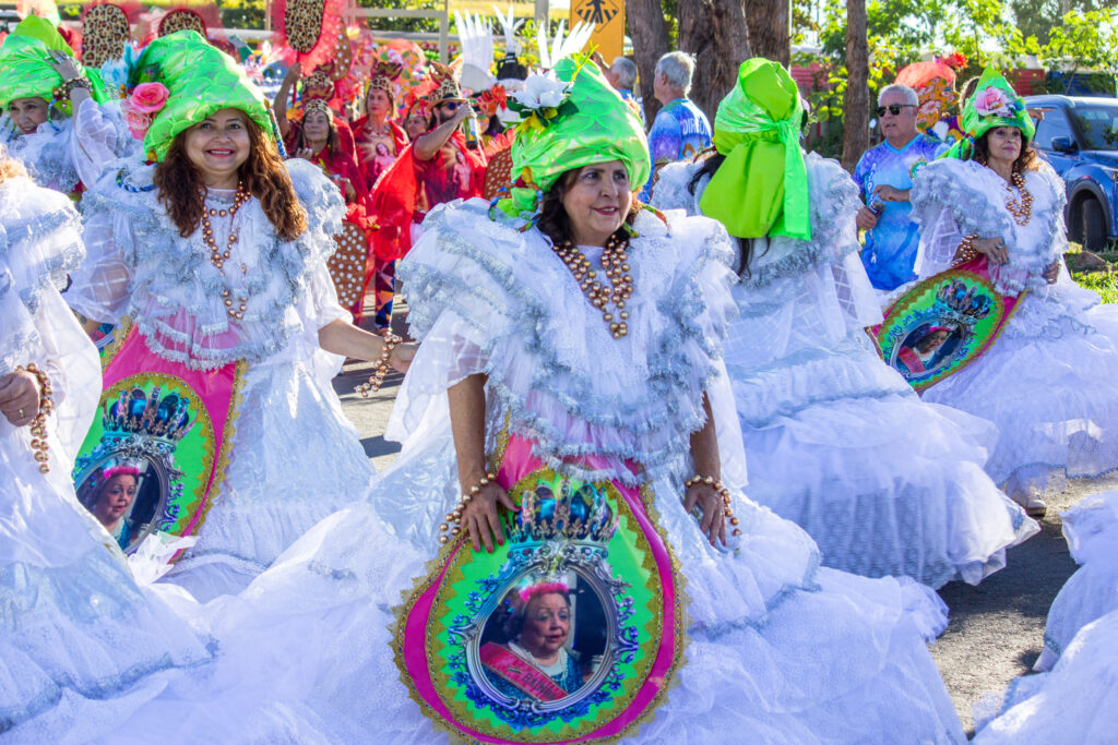 Ala das baianas da Unidos do Jardim Botânico encanta o público com tradição, cores e ancestralidade, reforçando a identidade cultural e o protagonismo comunitário no desfile. | Foto: reprodução UJB