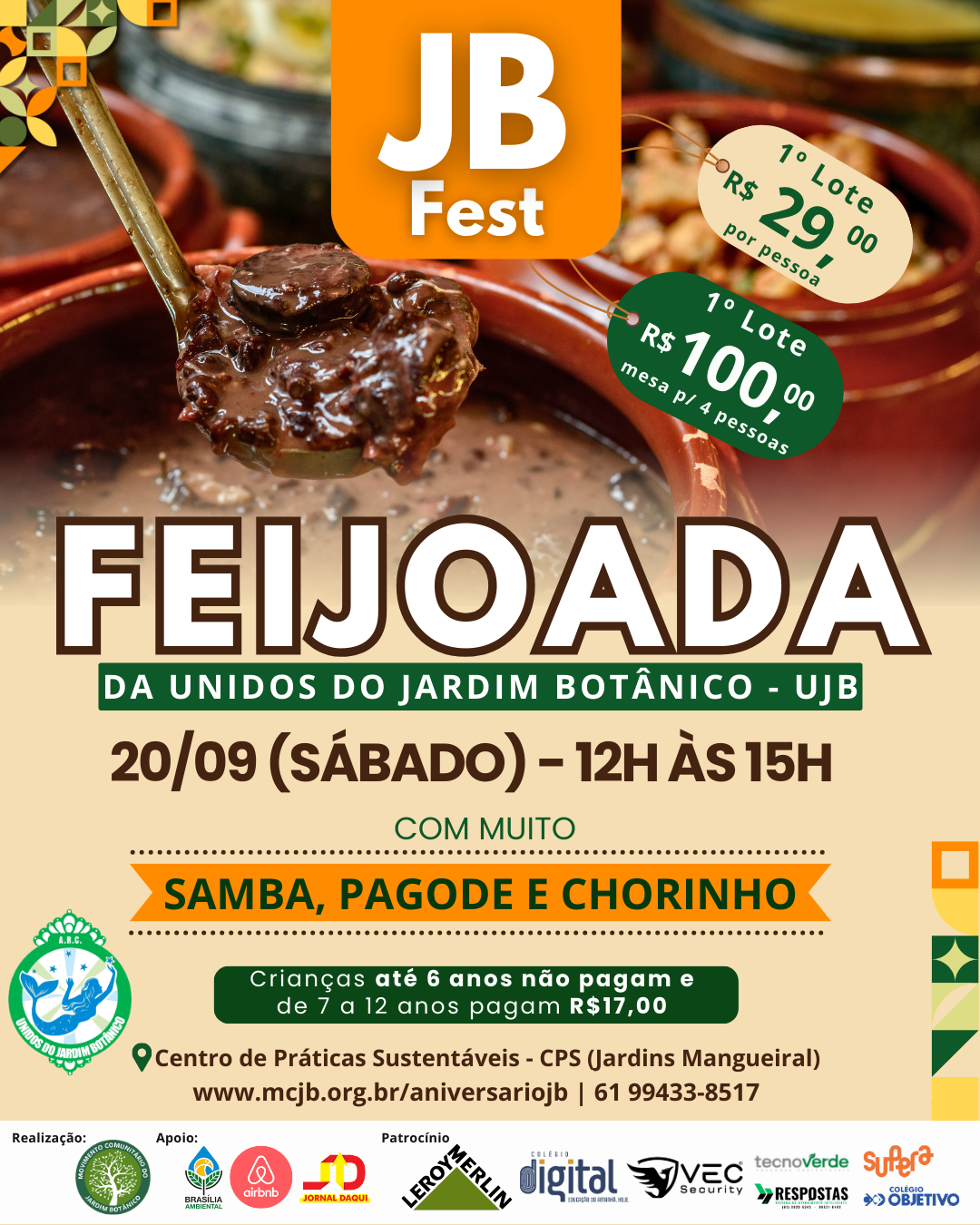 No dia 20 de setembro de 2025 (sábado) , venha comemorar os 21 anos do Jardim Botânico e os 10 anos do MCJB com uma feijoada inesquecível no Centro de Práticas Sustentáveis – CPS .